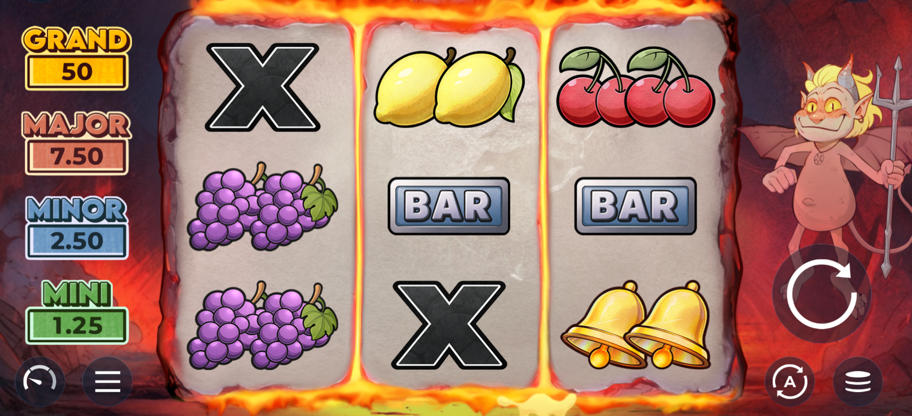 Set on a compact 3-reel, 5-payline layout, this new Champion slot game features bright visuals, simple symbols, and a mischievous little devil who watches over every spin as your constant companion on the reels.