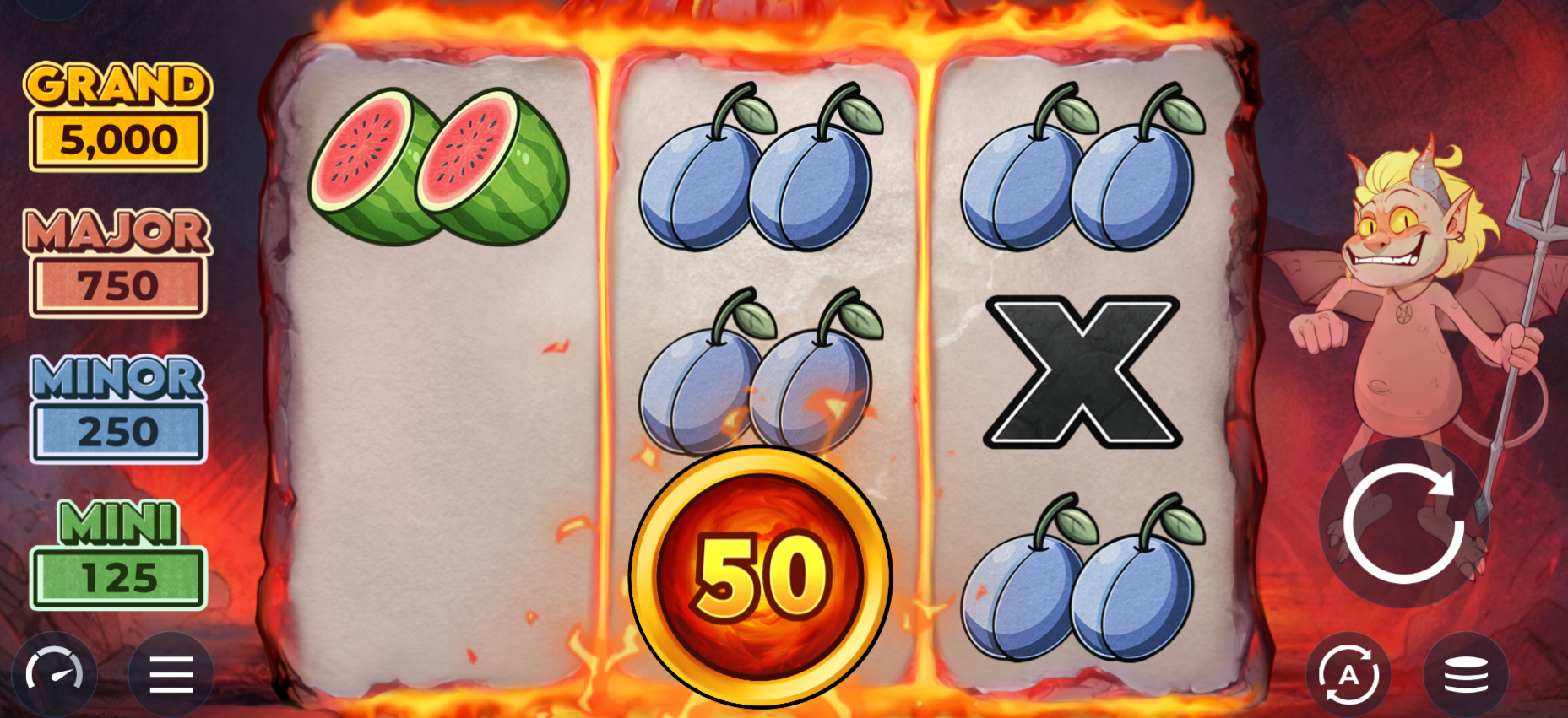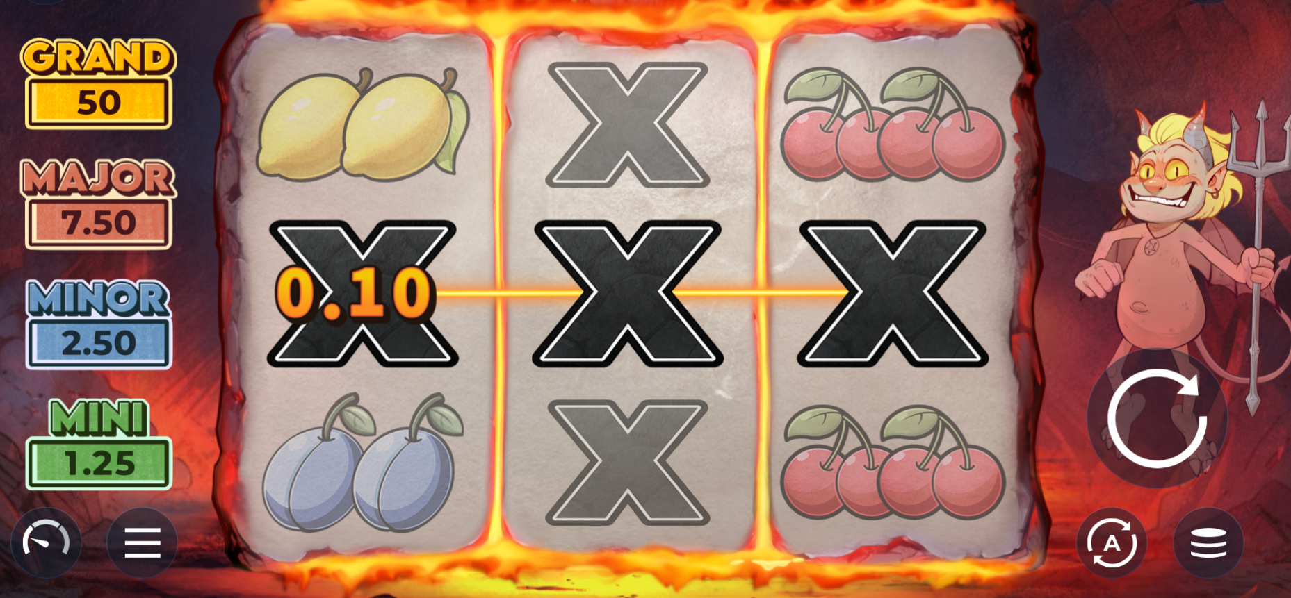 The Hold & Win bonus is the heart of Little Devil Coins and is triggered when at least one Coin or Collect symbol lands on each of the three reels. When this happens, all regular symbols will disappear, leaving only special symbols on the grid.